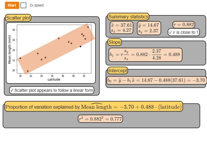 - Model: \(\hat{y} = \beta_0 + \beta_1 x + \epsilon\)