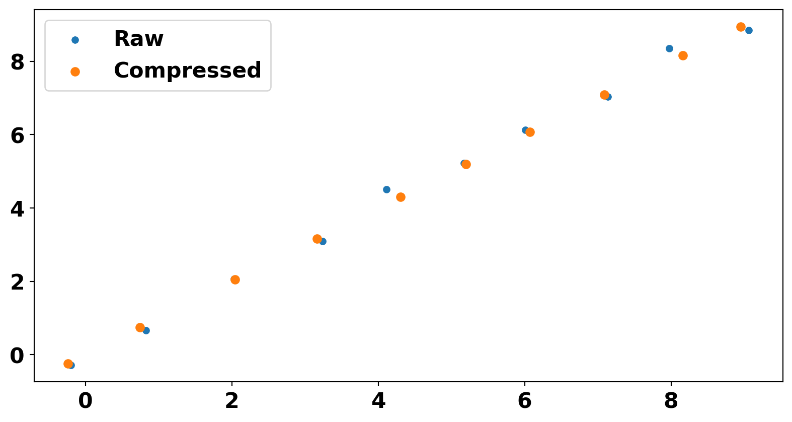 x = np.arange(0, 10) + np.random.randn(10) * 0.1