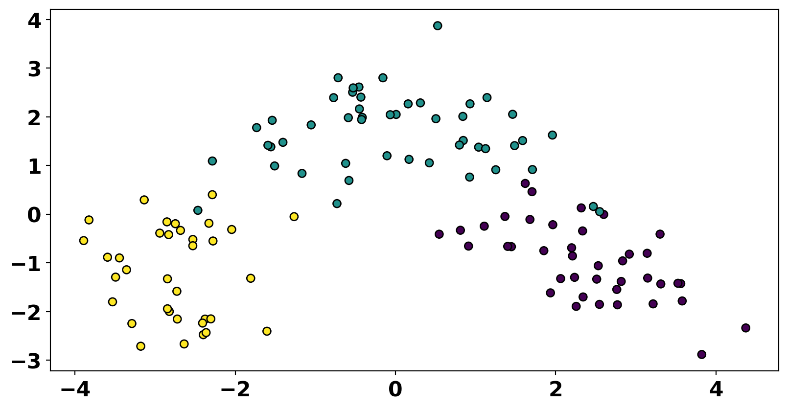 disp.ax_.scatter(X_train_pca[:, 0], X_train_pca[:,1], c=y_train, cmap='viridis', edgecolor='k');