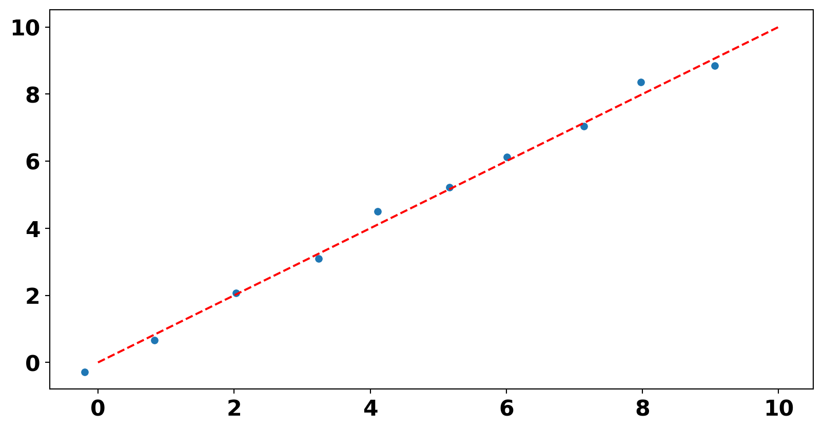 y = np.arange(0, 10) + np.random.randn(10) * 0.1